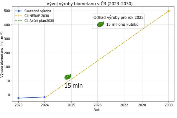 • 2024: výroba biometanu v ČR 7,5 milionu m³